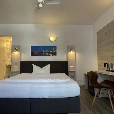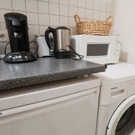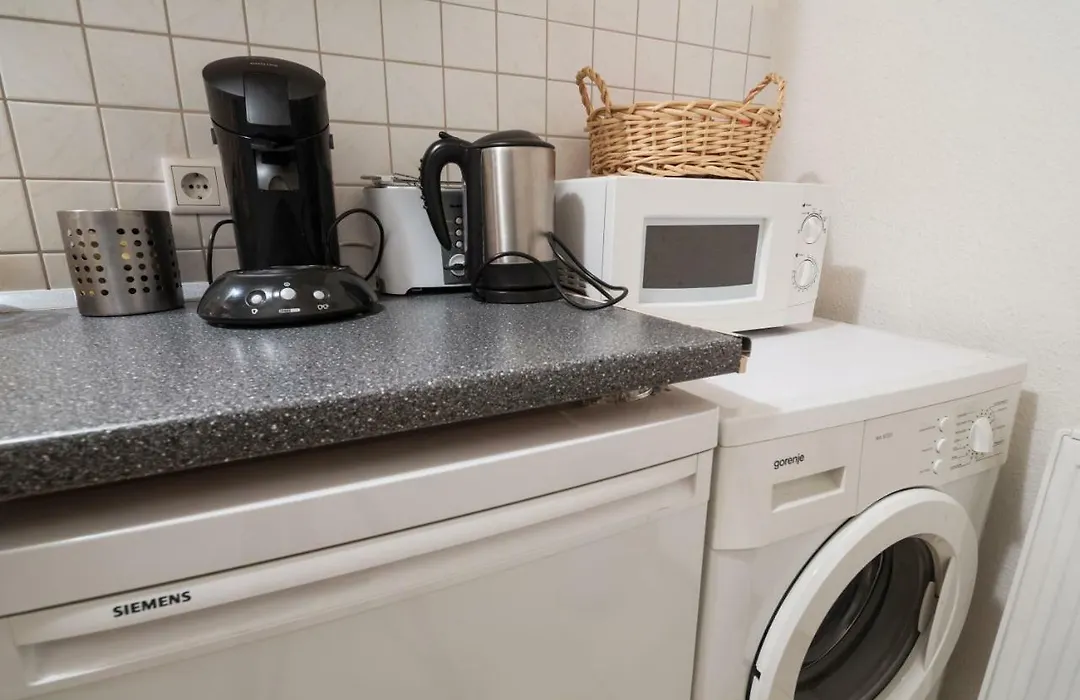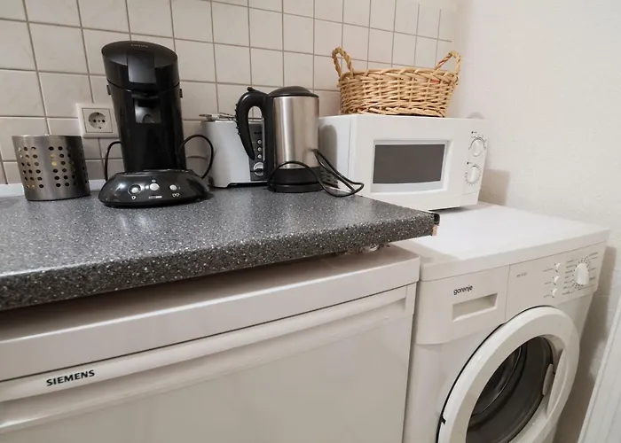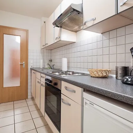Eine Küche verfügt über einen Kühlschrank, einen Herd und ein Kochfeld. Die nächstgelegene Bushaltestelle Heinrich-Heine-Allee befindet sich in 250 Meter Entfernung von diesen Unterkünften.
